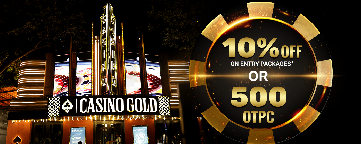 • This voucher is not for sale. Any individual caught selling or buying the vouchers will face legal action. • This offer is valid for Classic, Premium, and VIP packages only. • This voucher cannot be clubbed with any other offer. • This voucher is for one-time use only. • This voucher is not valid on blackout dates. • Management reserves the right to remove individuals from “Casino Gold” in case of unruly or disruptive behaviour. • Management also reserves the right to cancel or amend the terms and conditions of the promotion without prior notice. • Rights of admissions reserved.
